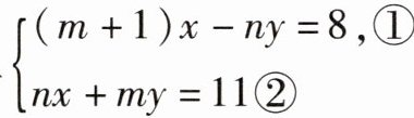 时$,$可以用$①×2 + ②$消去未知数$x,$也可以用$① + ②×5$消去未知数$y,$则$m - n = ($