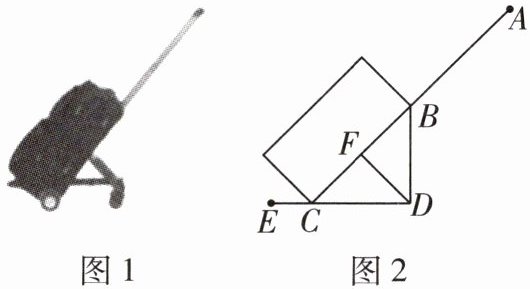 6 [2025佛山南海区月考]如图1、图2分别是某种型号拉杆箱的实物图与示意图,根据商品介绍,获得了如下信息:滑竿DE、箱长BC、拉杆AB的长度都相等,即DE= BC= AB= 60cm,点B,F在线段AC上,点C在DE上,支杆DF= 30cm。若EC= 24cm时,B,D相距48cm,连接BD,试判定BD与DE的位置关系,并说明理由。