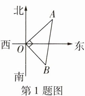 1 [2025洛阳期末]如图,在水塔O的东北方向32m处有一抽水站A,在水塔的东南方向24m处有一建筑工地B,在AB间建一条直水管,则水管的长为 (