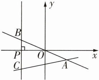 1 [2025西安爱知中学期中]如图,在平面直角坐标系中,已知正比例函数$y= -\frac {5}{12}x与一次函数y= \frac {1}{4}x-8$的图象交于点A。设x轴上一点$P(a,0)$,过点P作x轴的垂线(垂线位于y轴的左侧),分别交$y= -\frac {5}{12}x和y= \frac {1}{4}x-8$的图象于点B,C,若$BC= \frac {16}{13}OA$,则a的值为(