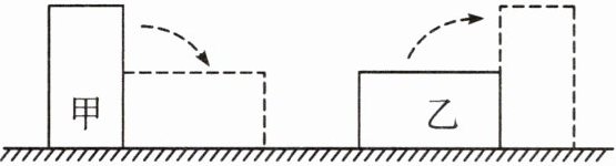 6. 两个形状、大小完全相同的均匀实心长方体放在水平地面上,甲的质量为16 kg,体积为$2×10^{-3}m^{3}$,则甲的密度为______$kg/m^{3}$。如图所示,当甲竖放,乙平放时,它们对地面的压强均为$1.6×10^{4}Pa$,将它们均顺时针旋转$90^{\circ }$,旋转后甲对地面的压强为$8×10^{3}Pa$,则乙对地面的压强为______Pa。(g取10 N/kg)