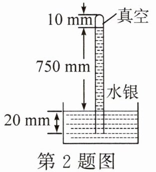 2.如图所示,小玥同学利用托里拆利实验测量大气压强的值,以下判断正确的是()