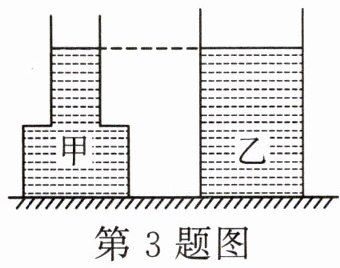 3.如图所示的两个容器放在水平桌面上,它们的质量和底面积均相同,容器中分别装有甲、乙两种液体且液面在同一高度。若容器对桌面的压强相等,则两种液体对容器底部的压强()