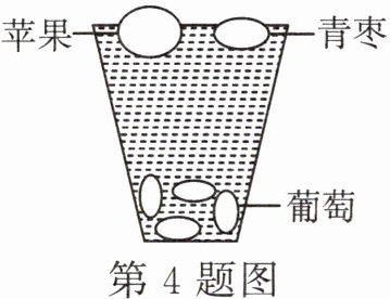 4.如图所示是小红帮妈妈洗水果时的情景,她发现不同的水果在水中静止时所处的位置不同,下列说法正确的是()