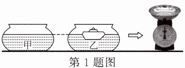 1.如图所示,水平桌面上有两个完全相同的鱼缸甲和乙,盛有适量的水,把一个橡皮泥做的小船放入乙后,小船处于漂浮状态,此时两鱼缸内的水面刚好相平。把它们分别放在台秤上,则台秤的示数()