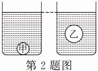 2.相同的两个烧杯中分别装有不同液体,把甲、乙两球分别轻轻放入两杯液体中,最后甲球沉底,乙球悬浮,如图所示。甲、乙两球排开液体的质量相等,则()