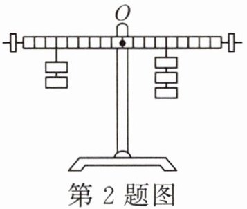 2.如图所示,质量可忽略的杠杆上所标的每一格长度都是相等的,O为支点,杠杆两边所挂的每一个钩码均相同,杠杆在水平位置平衡。在下列情况中,杠杆仍在水平位置保持平衡的是()