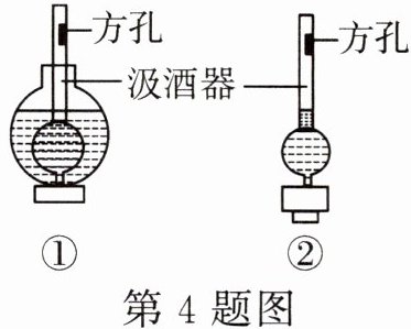 4. 如图所示,①是取酒过程,②是装酒过程。要完成这两个过程,手指对应的操作是()