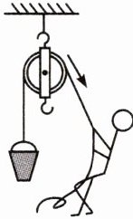 4. 建筑工人通过如图所示的装置将一件重350N的涂料从地面提起,涂料离开地面后上升了2m,工人所用的拉力为500N,这个过程中该装置()