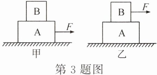 3.如图甲、乙所示,拉力F的大小为8N,叠放在一起的物体A和B在拉力F的作用下沿水平方向做匀速直线运动,则下列结论正确的是()