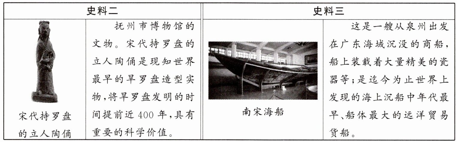 (3)如果文物会说话,史料三中的古船会告诉你宋朝哪些方面的历史呢?