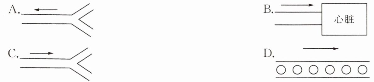 5. 下列各图中,箭头表示血管中血液流动的方向,能确定为动脉的是()