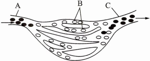 6.下图为人的胃部血液循环示意图,若A、B、C为对应血管中的血流速度,则下列血液流速关系式中正确的是()