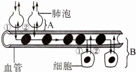 (1)A 肺泡与血液的气体交换 B 组织细胞与血液的气体交换