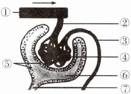 9.如下图所示的是肾单位的部分结构,根据此图完成下列各题。
