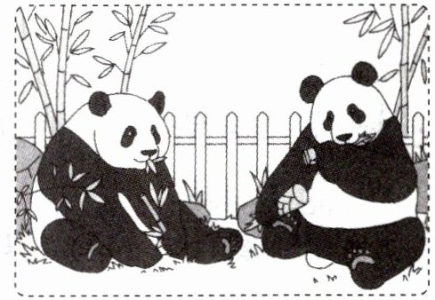 示例:动物园的熊猫馆里,两只大熊猫正在吃新鲜的竹子呢!你看它们多可爱呀!圆圆的脑袋,黑溜溜的眼睛,配上圆滚滚的身体,萌萌的样子,谁不喜欢?真不愧是我们的“国宝”!再看它们吃竹子的样子:前爪握着竹笋,用牙又撕又咬,吃得津津有味!其中一只边吃竹叶边偷看对方,好像在说:“我的竹叶又脆又嫩,你可不能和我抢!”