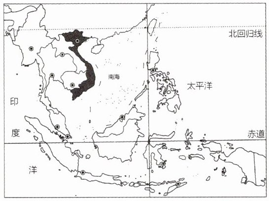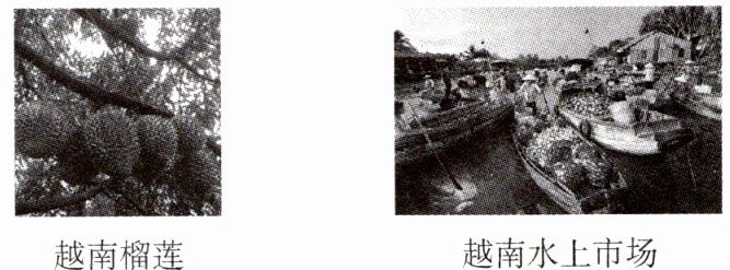 2024年第一季度,越南榴莲出口额高达2.54亿美元,同比增长66%。结合越南位置示意图,完成6-7题。
