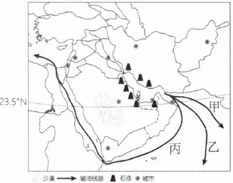 6.下列关于海上输油线路甲、乙、丙的叙述,错误的是()