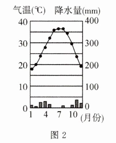 10.小明在学习地理后,认为地理主要从where(在哪里)、what(有何特征)、why(为何这样)、how(如何发展)四个方面去学习。图1为西亚示意图,图2为西亚圣城麦地那的气温曲线和降水量柱状图。请你按照小明的地理学习路径,完成下列问题。