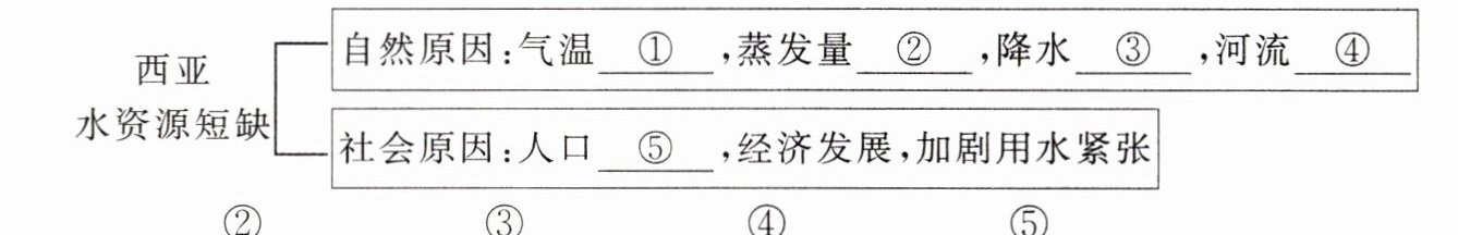 西亚地区水资源短缺。小明同学对其原因进行了探究,整理如下,请补充完整。