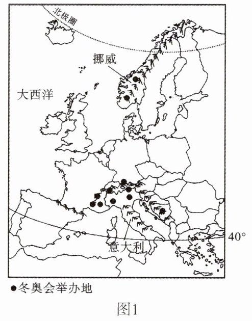 (2)冬奥会举办地多分布于阿尔卑斯山脉附近,该地区被称为“冬季运动之乡”。分析阿尔卑斯山脉附近适合举办冬奥会的原因。