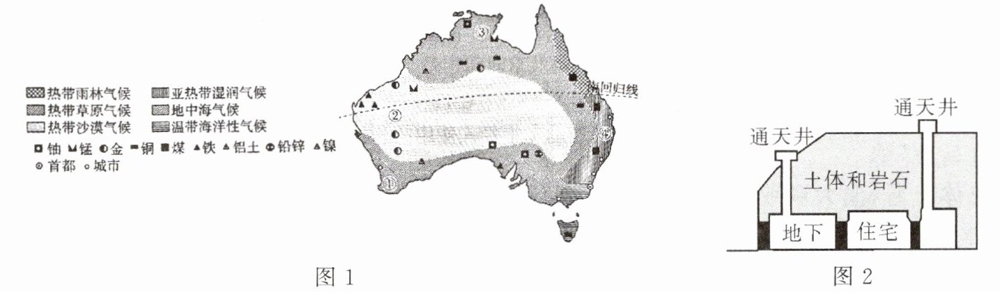 澳大利亚(图1)某地区降水稀少,自然景观极度荒凉,气温年较差大,夏季最高气温可达50℃,冬季气温较低。早年,该地区的矿工经常在矿井里躲避炎热天气,长此以往便形成了具有当地特色的地下住宅(图2)。据此完成8-9题。