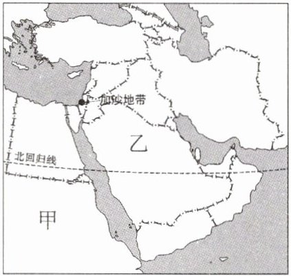 2023年10月7日新一轮巴以冲突爆发,西亚地区再次成为世界关注的焦点。读加沙地带位置示意图,完成3-4题。