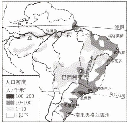 3.关于巴西人口主要分布地的叙述,正确的是()