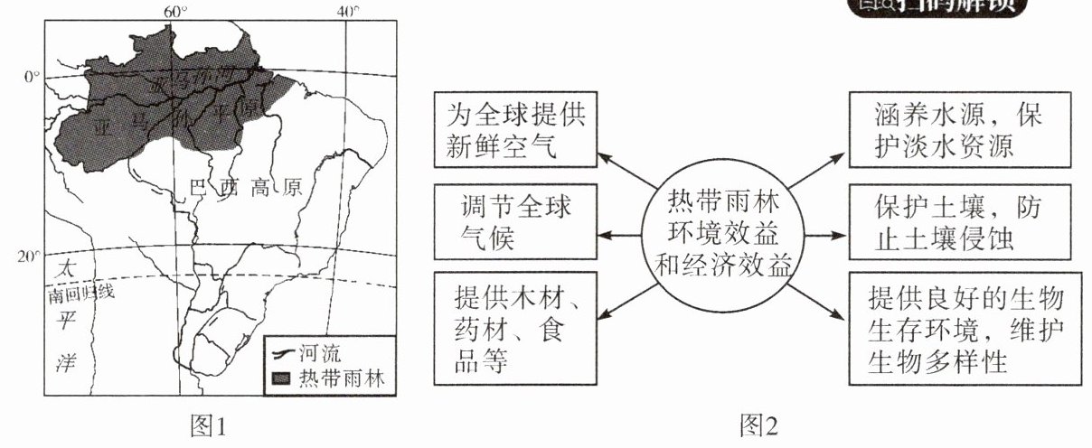 材料二 亚马孙热带雨林的环境效益和经济效益示意图(图2)。