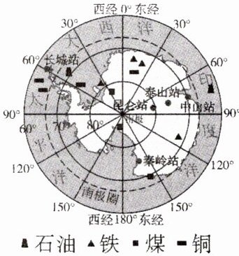 1.关于南极洲矿产资源的分布,描述正确的是()