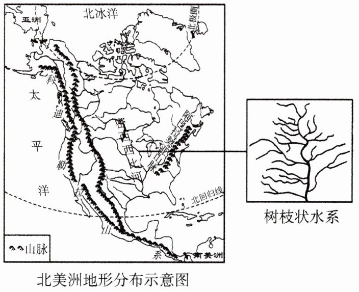 (2)北美洲东西两侧为山地,中部为平原,三大地形区南北纵列分布,使得北极风暴能够长驱直人,影响北美洲大部分地区。