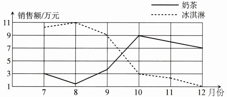六、下面是某饮品店 2024 年下半年奶茶、冰淇淋的销售额统计图。