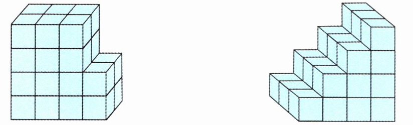四、组成下图的每个小正方体的体积为 1 立方分米,把每个图形的体积填在括号里。