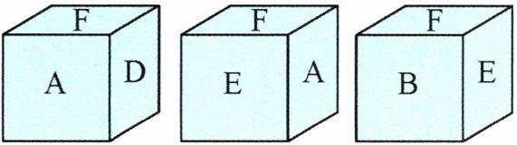 六、一个正方体的 6 个面分别写着 A、B、C、D、E、F,根据右图可以知道,A 与()相对,F 与()相对,D 与()相对。