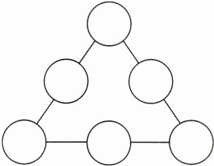五、请将$\frac{1}{12}$、$\frac{1}{6}$、$\frac{1}{4}$、$\frac{1}{3}$、$\frac{5}{12}和\frac{1}{2}$填在圆圈中,使每条线上的三个数的和都相等。