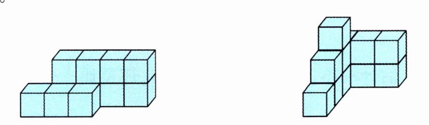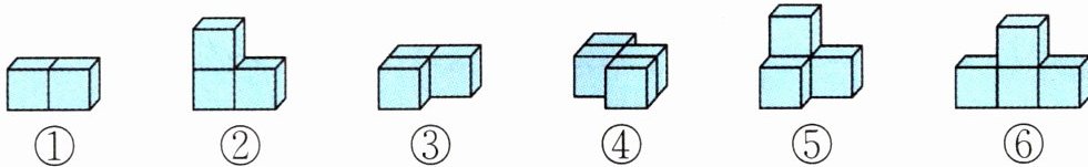 6. 下面的物体都是由棱长1厘米的正方体摆成的。它们的体积各是多少立方厘米?填在下面的括号里。