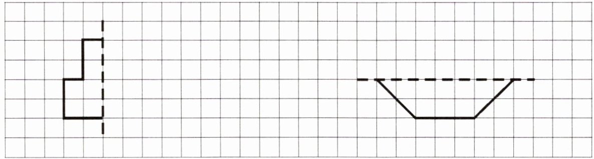 四、分别画出下面两个轴对称图形的另一半。