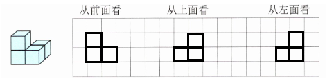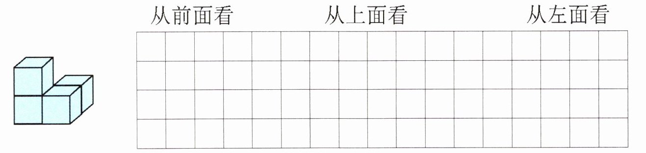 2. 找出从前面、上面、左面看到的图形,填一填。