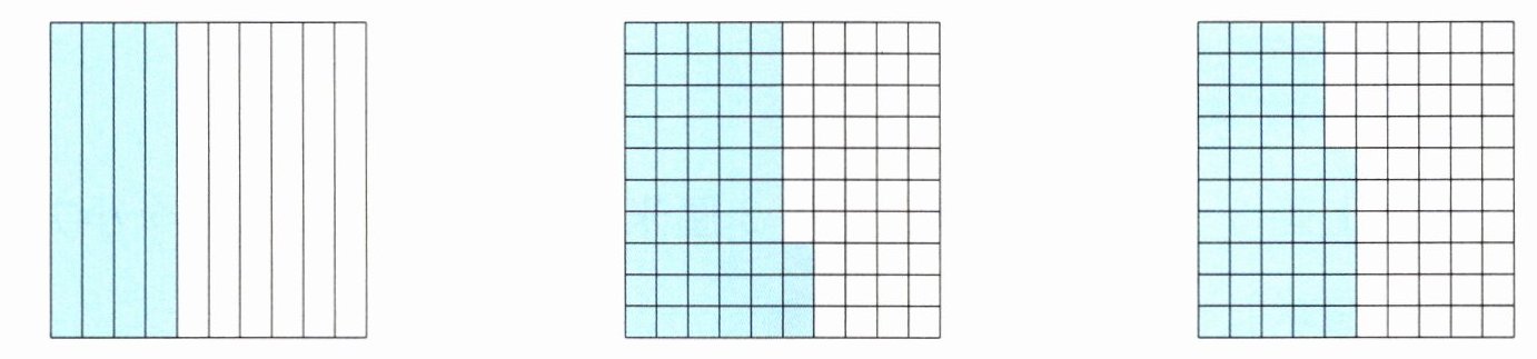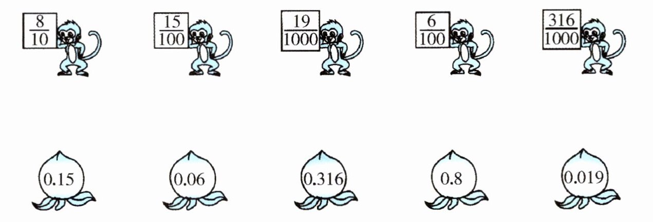 $\frac {4}{10}$ 0.4 $\frac {53}{100}$ 0.53 $\frac {46}{100}$ 0.46