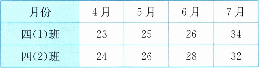 二、某小学四年级两个班回收易拉罐数量情况如下表(单位:个)。