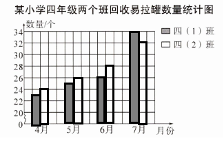 (1)班 7 月份回收的易拉罐最多,4 月份回收的易拉罐最少。