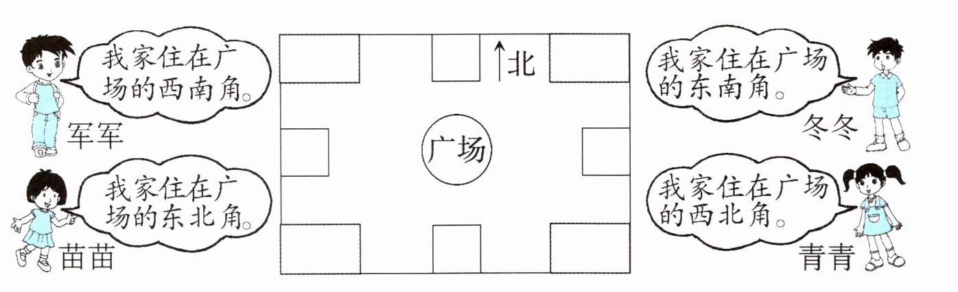 从左到右,从上到下:青青、苗苗、军军、冬冬 。