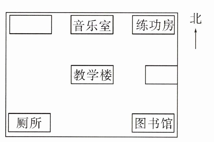 1. 大门在教学楼的正东方向,食堂在教学楼的西北角,请在图中标出来。