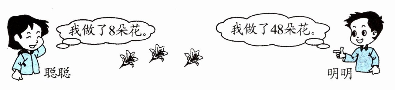 (1)聪聪和明明一共做了多少朵花? $\square \bigcirc \square =\square$(朵)