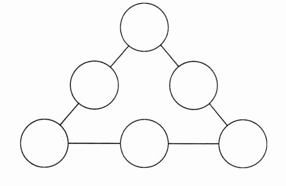 六、在$\bigcirc$里填上不同的整百数,使每边三个数的和都是1200。