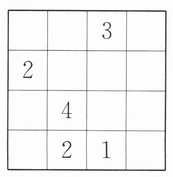 七、在右边的方格中,每行、每列都有1~4这四个数,并且每个数在每行、每列都只出现一次。填出方格里其他的数。