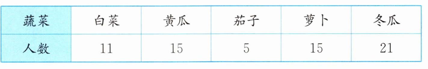 六、小明调查了本班同学最喜欢吃的蔬菜情况。