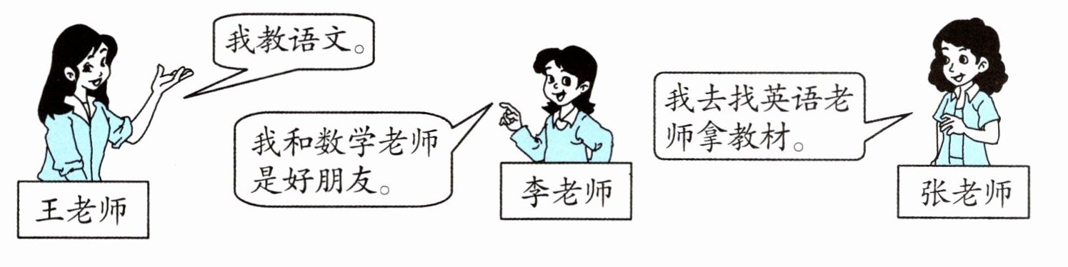 王老师是语文老师。张老师是数学老师。李老师是英语老师。