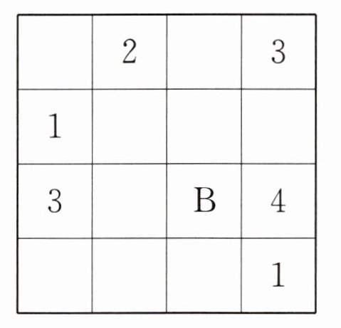 六、在下面的方格中,每行、每列都有1~4这四个数,并且每个数在每行、每列都只出现一次。B应该是几?