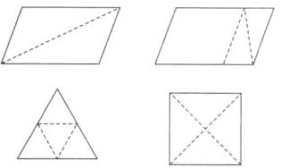 分成4个大小相等、形状相同的三角形 分成4个相同的图形